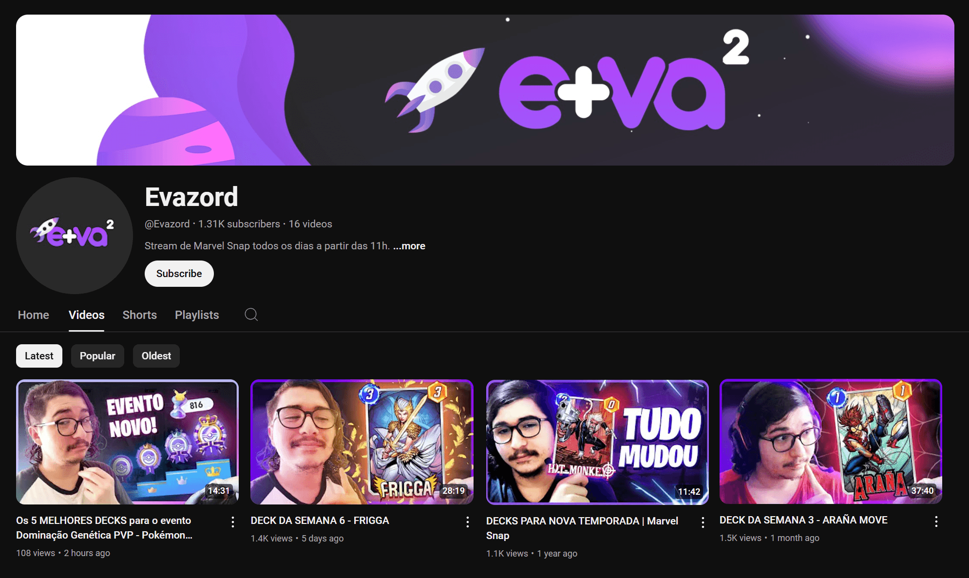 Thumbnails for Evazord's Youtube channel