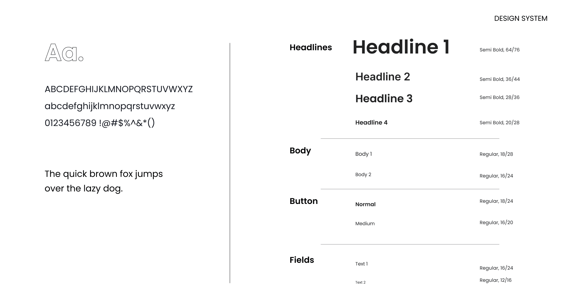 To maintain a very clear consistency throughout the website (something heavily missing in the original design) we set a design system with visual guidelines to be followed.