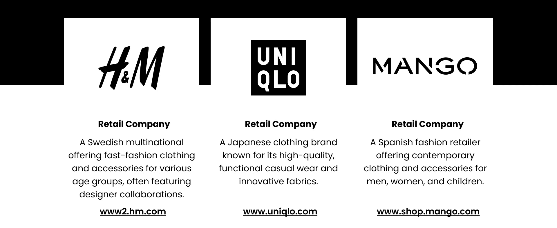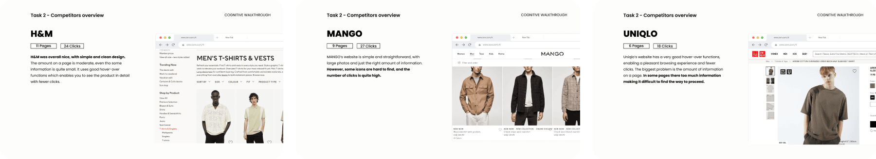 The next step was to understand who is competing with Zara and what is the general experience of their websites.