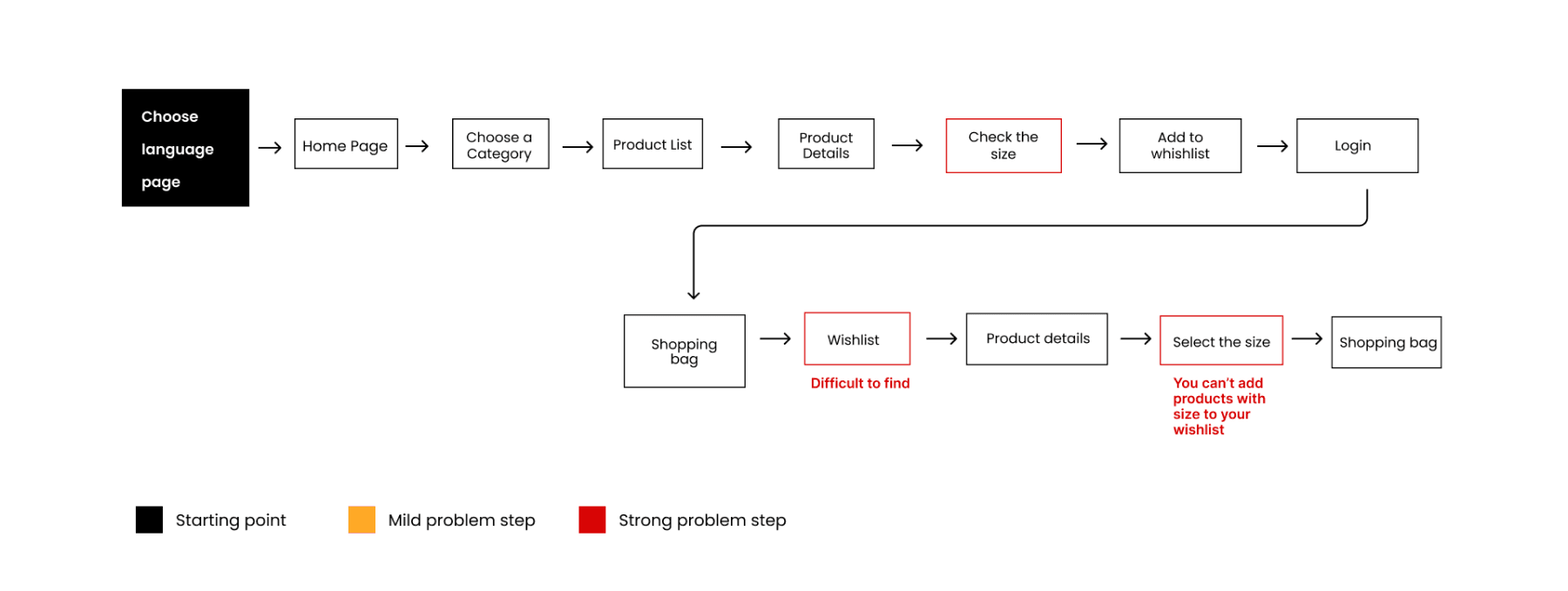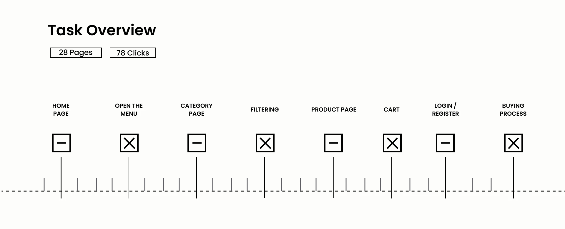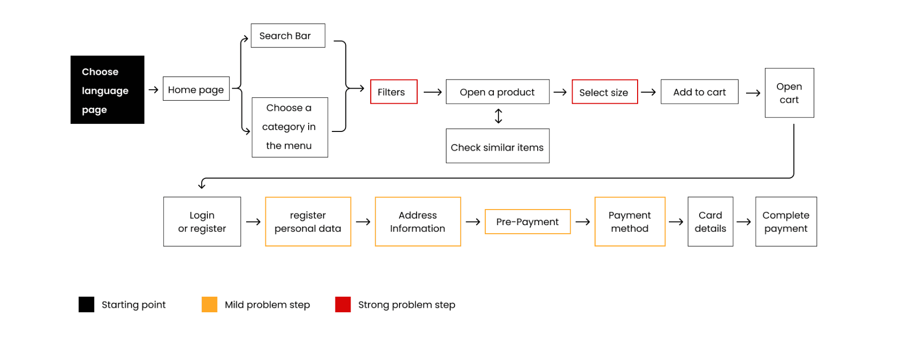 In the first task the main problems were in the filters and in the excessive amount of pages on the cart flow.