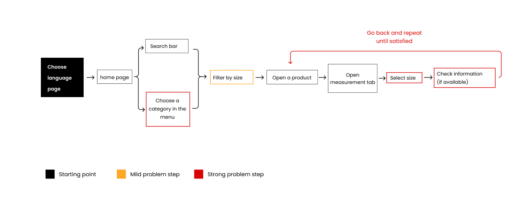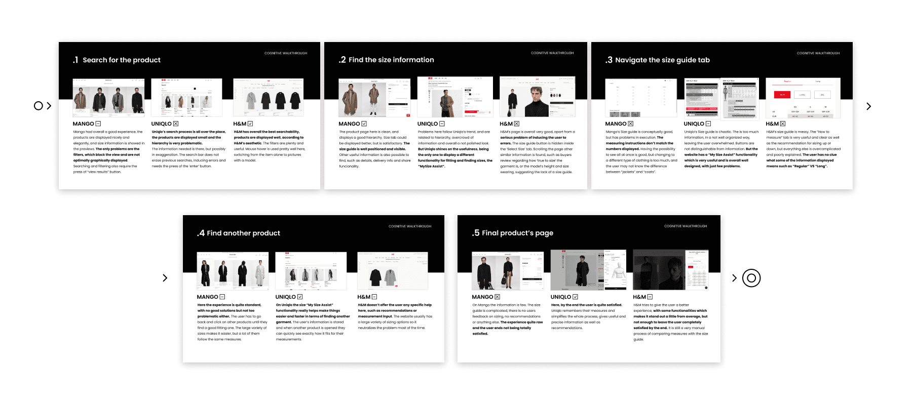 The second task displayed the same problems in terms of filtering and UI, but also big inconsistencies regarding the garment sizes on the cart.
