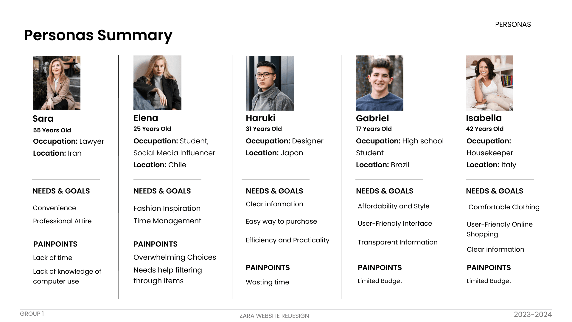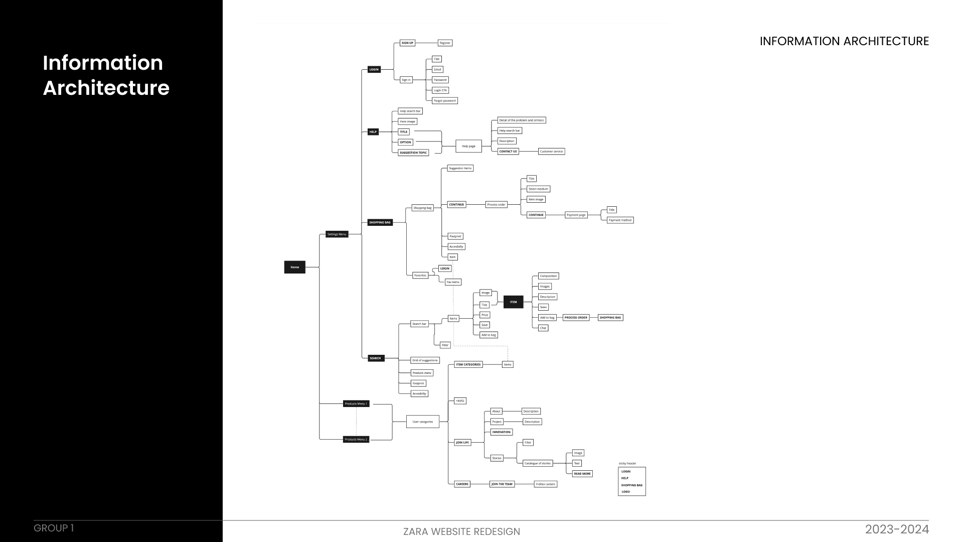 Our objective was to improve Zara’s user interface (UI), refine its information architecture, and add essential functionalities that were missing. We aimed to enhance both the ergonomics and usability of the site, while aligning with Zara’s brand identity. This approach was guided by the insights and methodologies we explored in class.